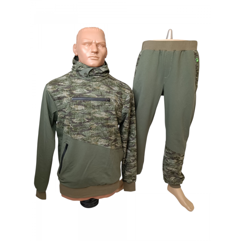 Tepláková souprava v kaki stylu. Tepláková souprava je z tenčí teplákoviny. Mikina má dvě kapsy na zip, aby Vám při manipulaci s rybou nic nevypadlo. Na kapuci jsou dva ozdobné knoflíky. Tepláky mají dvě klínové kapsy na předních dílech a jednu klasickou kapsu na zadním dílu. Tepláková souprava je na objednání, tahle co vidíte na fotkách má velikost XL. V případě zájmu je možné ušít teplákovou soupravu i ve větších velikostech, kde budu potřebovat vaše rozměry, viz foto s velikostní tabulkou.